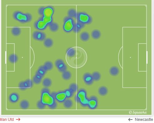 Ketika bola berada di kaki Mata, dirinya menggiring bola seolah lebih ke dalam wilayahnya sendiri, atau melebar ke samping. Begitu juga peran dua striker MU yakni Radamel Falcao dan Robin Van Persie yang bermain melebar. Ini lagi-lagi memancing para pilar pertahanan Newcastle.