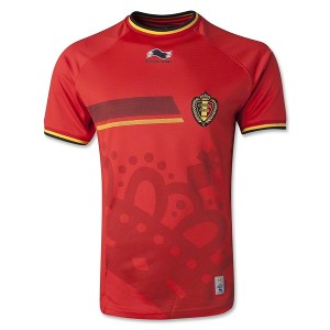 Seragam kandang Belgia berbalut warna merah dengan simbol mahkota besar di bagian perut. Kendatipun ada unsur dan nuansa seorang raja, tapi desain ini terasa agak melampaui batas.
