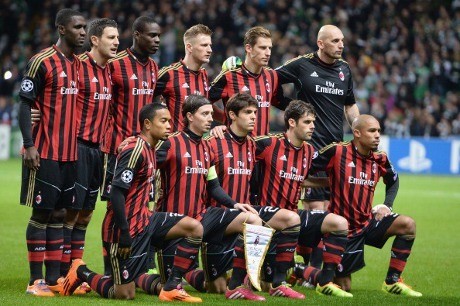 32 Abbiati (GK); 14 Birsa, 16 Poli, 17 Zapata, 18 Montolivo(C), 20 Abate, 22 Kaka, 25 Bonera, 28 Emanuelson, 34 N. de Jong, 45 Balotelli.