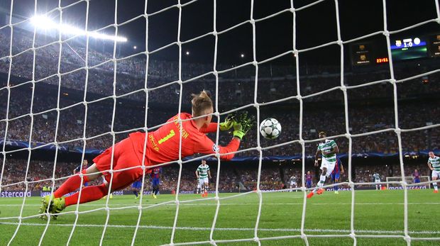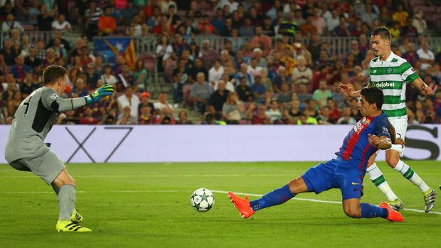 Celtic yang terus ditekan oleh para pemain Barca mendapat kesempatan emas menyamakan skor di menit ke-23 ketika Marc-Andre Ter Stegen melanggar Moussa Dembele.