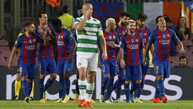 Barcelona - Barcelona tampil trengginas pada laga perdananya di Liga Champions musim ini usai menggilas Celtic FC dengan skor 7-0, lewat torehan trigol Lionel Messi.