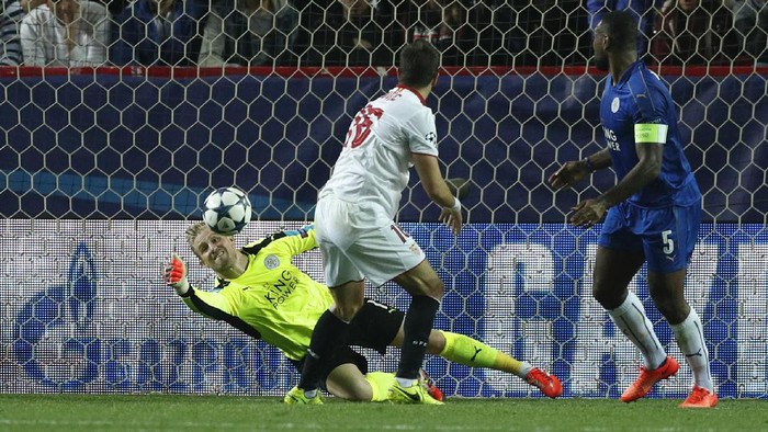 Keperkasaan Schmeichel di bawah mistar gawang The Foxes jadi penyebab sulitnya Sevilla mencetak gol. Salah satunya dengan keberhasilan kiper 30 tahun itu dalam menangkap tendangan penalti Joaquin Correa di menit 14.