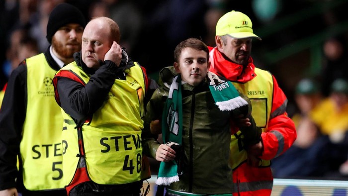 Penyusup lapangan tersebut dengan cepat langsung ditangkap oleh petugas dan dibawa keluar lapangan. Aksi oknum suporter itu menuai koor cemoohan oleh suporter Celtic lainnya.