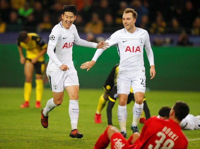 Son mengancam pada menit ke-30. Dia gagal memaksimalkan umpan dari Christian Eriksen itu menjadi gol.