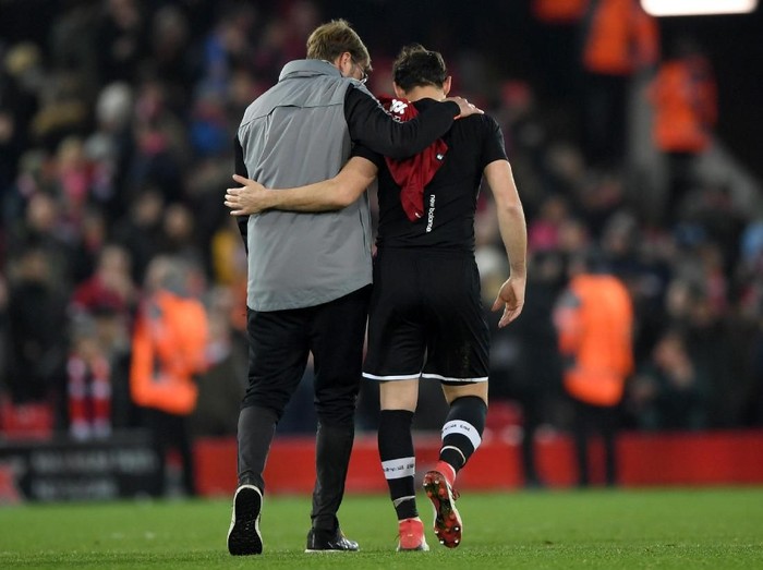 Manajer Liverpool Juergen Klopp merangkul Casillas sembari bercakap-cakap seusai pertandingan berakhir. Klopp mengindikasikan bahwa Casillas belum ingin pensiun.
