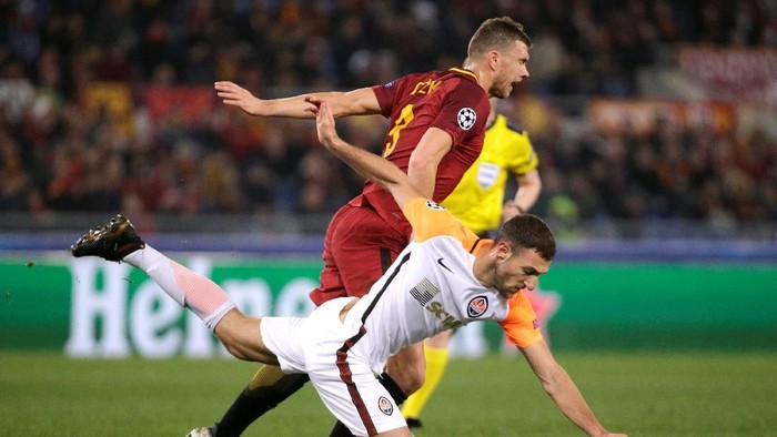 Sebuah percobaan Shakhtar di menit ke-28 belum mengancam gawang Roma. Tembakan Taison melambung.
