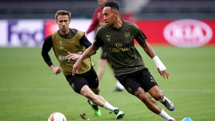 Dalam sesi latihan resmi di Stadion Olympic, Baku, Azerbaijan, Selasa (28/5) waktu setempat, terlihat pergelangan tangan kiri Aubameyang dibebat perban. Padahal pada latihan sehari sebelumnya, tak ada apapun terpasang.