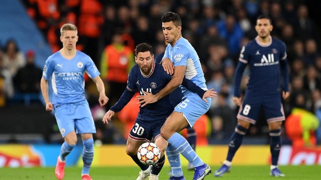 Man City vs PSG berlangsung di Etihad Stadium, Kamis (25/11/2021) dini hari WIB. The Citizens langsung menekan di awal dan punya peluang emas pada menit kelima lewat bola sundulan Rodri, yang disapu oleh Presnel Kimpembe tepat di mulut gawang.