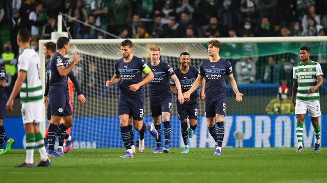 Manchester City begitu dominan atas Sporting CP di babak pertama. The Citizens sudah unggul 4-0 sampai turun minum.