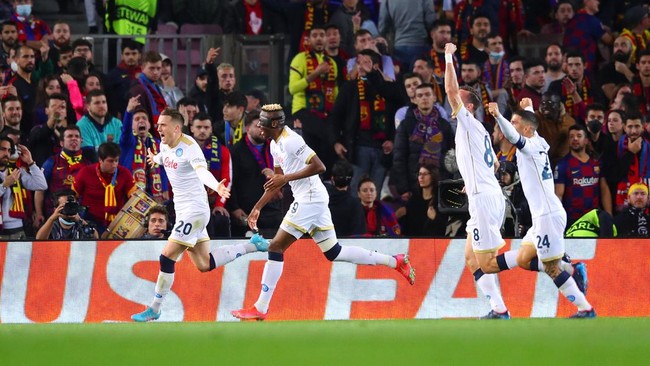 Barcelona bertemu Napoli di fase play-off Liga Europa. Meski tampil dominan, Blaugrana tertinggal 0-1 di babak pertama.