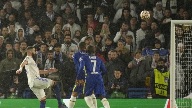 Benzema sambil terbang menanduk bola tanpa bisa dihalau Edouard Mendy. Unggul 1-0 membuat Madrid lebih bersemangat dan mereka menggandakan skor tiga menit kemudian.