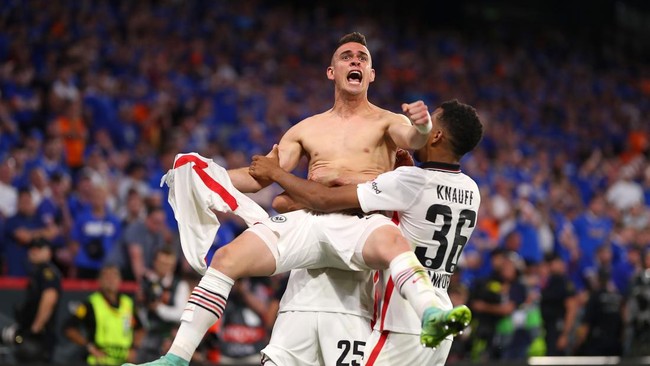 Eintracht Frankfurt tampil sebagai juara Liga Europa 2021/2022. Frankfurt menang 5-4 atas Rangers via adu penalti, usai berimbang 1-1 selama 120 menit.