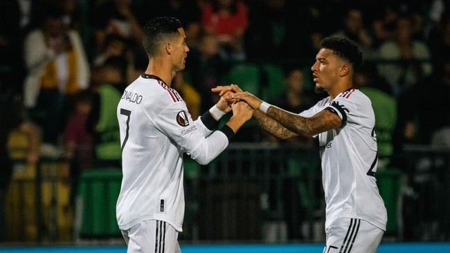 Manchester United unggul 2-0 di babak pertama saat bertandang ke markas Sheriff Tiraspol pada matchday kedua Liga Europa musim ini. Dua gol Setan Merah masing-masing dicetak Cristiano Ronaldo dan Jadon Sancho.