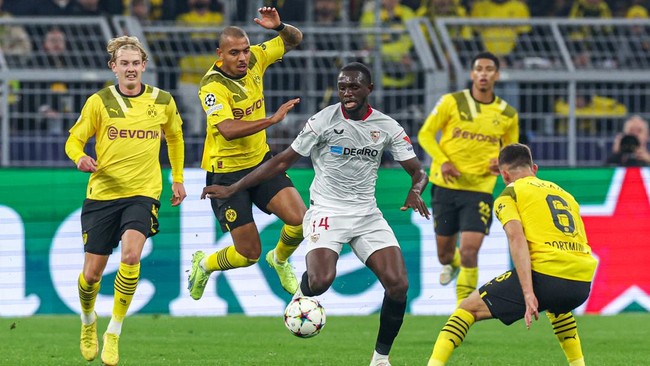 Dortmund vs Sevilla berlangsung di Signal Iduna Park, Rabu (12/10/2022) dini hari WIB. Los Nervionenses unggul duluan di menit ke-18 lewat gol Tanguy Kouassi.