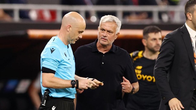 Mourinho, yang melatih AS Roma, bereaksi keras kepada wasit Anthony Taylor setelah timnya dikalahkan Sevilla di final Liga Europa pada tengah pekan lalu.