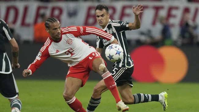 GOL! Bayern yang pelan-pelan mulai mengembangkan permainan, mencetak gol pada menit ke-28. Sodoran Harry Kane di depan kotak penalti disambar sepakan mendatar Leroy Sane. Bola mengarah tepat ke Andre Onana, namun kiper MU itu gagal menangkapnya!