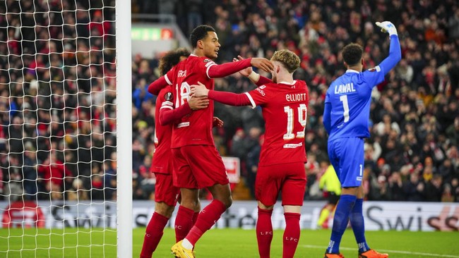 Liverpool mengunci tiket babak 16 besar Liga Europa lewat kemenangan 4-0 atas LASK di Anfield, Jumat (1/12/2023) dini hari WIB. Cody Gakpo mencetak dua gol, lalu dua gol lain dibuat Luis Diaz dan Mohamed Salah.