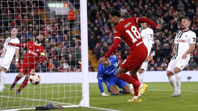 Liverpool menang 4-0 saat menjamu LASK di Anfield pada Matchday 5 Liga Europa, Jumat (1/12/2023) dini hari WIB. 'Si Merah' unggul dua gol di babak pertama lewat Luis Diaz dan Cody Gakpo.