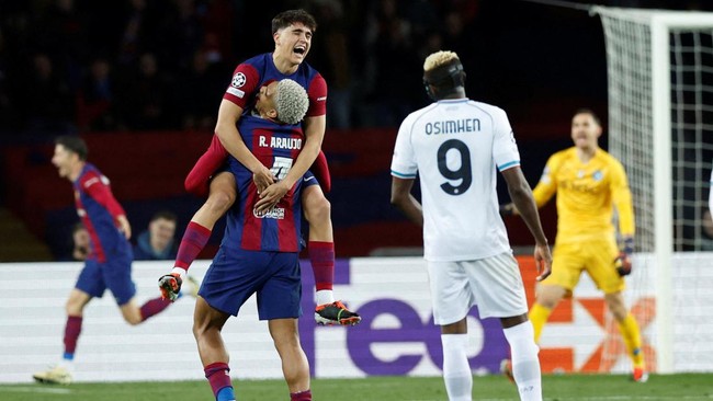 Barcelona maju ke babak delapan besar Liga Champions usai menyingkirkan juara Italia, Napoli. Barcelona menang 3-1 di leg kedua 16 besar di Estadi Olimpic Lluis Companys, Rabu (13/3/2024) dini hari WIB, untuk lolos dengan agregat 4-2.