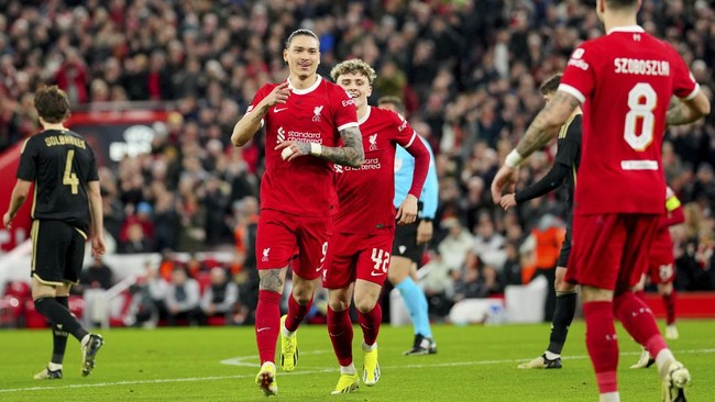 Liverpool sudah membuka keunggulan pada menit ketujuh. Umpan silang Dominik Szoboszlai dari kanan dituntaskan dengan tenang oleh Darwin Nunez.
