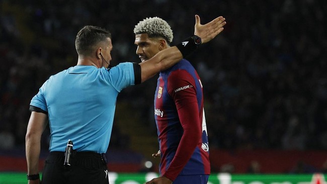 Ronald Araujo diusir wasit setelah jadi orang terakhir yang menahan laju Bradley Barcola di dekat kotak penalti Barcelona. Blaugrana pun harus bermain dengan 10 pemain di sisa waktu yang ada.