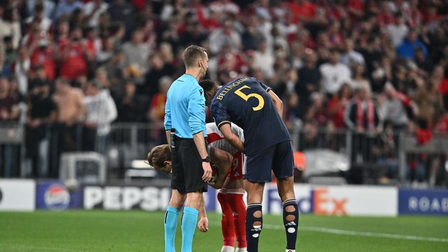 Bellingham berusaha mengganggu konsentrasi Kane agar tak bisa bikin gol ke gawang Madrid. Usaha Bellingham ini tak membuahkan hasil karena Kane dengan tenang mengeksekusinya menjadi gol.