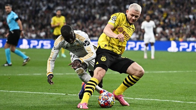 Laga final Liga Champions musim ini mempertemukan Borussia Dortmund vs Real Madrid. Duel berlangsung di Stadion Wembley, Minggu (2/4/2024) dini hari WIB.