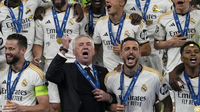Real Madrid mengunci gelar Liga Champions ke-15. Itu setelah mereka menang 2-0 atas Borussia Dortmund pada final, Minggu (2/6/2024) dini hari WIB.