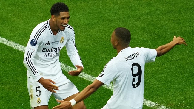 Kylian Mbappe menandai debutnya bersama Real Madrid dengan sebuah gol di Piala Super Eropa. Jude Bellingham memang sudah menduga rekan barunya itu akan unjuk gigi.