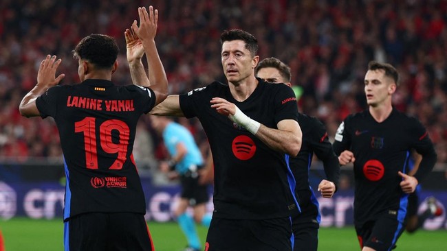 Hujan gol terjadi di laga Benfica vs Barcelona di matchday 7 Liga Champions. Pertandingan di Estadio da Luz, Lisbon, Rabu (22/1/2025) dini hari WIB, dimenangi Blaugrana dengan skor 5-4.