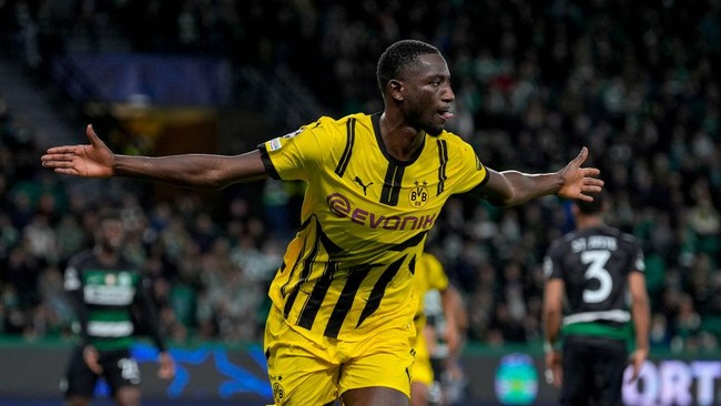 Penyerang Guinea itu menanduk bola crossing Julian Brandt ke pojok gawang Sporting. Dengan tambahan satu gol itu, Guirassy menguasai sementara puncak top scorer Liga Champions dengan 10 gol.