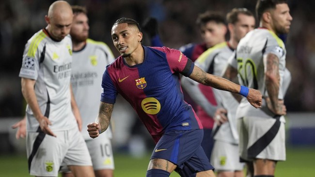 Raphinha bikin dua gol di laga ini, plus satu gol dari Lamine Yamal. Benfica hanya sempat menyamakan skor melalui Nicolas Otamendi.