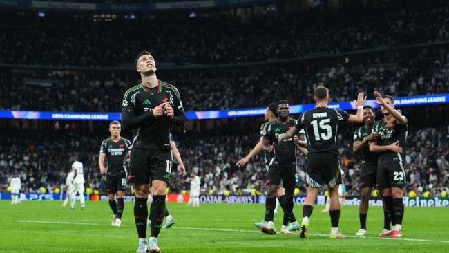 Arsenal melaju ke semifinal Liga Champions usai menyingkirkan juara bertahan Real Madrid. Kepastian tersebut didapat usai The Gunners menang 2-1 di Santiago Bernabeu pada leg kedua perempatfinal, Kamis (17/4/2025).