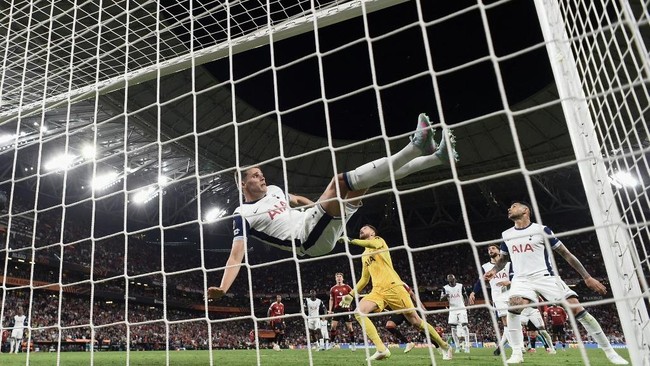 Micky van de Ven melakukan penyelamatan gemilang di final Liga Europa. Sapuan bek asal Belanda itu mengamankan kemenangan Tottenham Hotspur dan berbuah trofi.