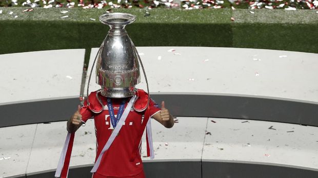 Perayaan unik dilakukan Lucas Hernandez setelah meraih juara Liga Champions. Dia memakai trofi Si Kuping Besar dengan posisi terbalik seperti sedang mengenakan helm.