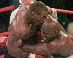 Akan tetapi, yang dibicarakan saat itu justru adalah tindakan Tyson yang dua kali menggigit kuping Holyfield di atas ring. Pada gigitan pertama poin Tyson dikurangi wasit. Pada gigitan kedua partai langsung dihentikan dan Tyson didiskualifikasi.