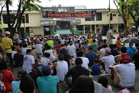 Foto-foto di bawah ini sudah barang tentu menunjukkan betapa seriusnya warga Filipina saat Pacquiao bertarung melawan Floyd Mayweather Jr. dalam perebutan gelar WBO, WBA, dan WBC di kelas welter, Minggu (3/5/2015).