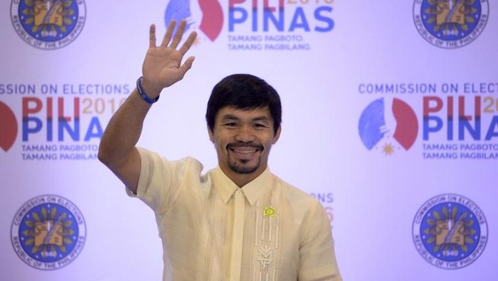 Pacquiao resmi gantung sarung tinju setelah mengalahkan Timothy Bradley pada April 2016 lalu. Juara dunia di delapan divisi tersebut ingin fokus membangun karier politik kalau terpilih sebagai anggota senat.