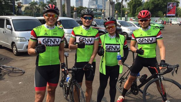 GFNY Indonesia 2016 resmi diluncurkan di Jakarta, Minggu (17/7/2016) pagi. Lebih dari 300 peserta dari berbagai komunitas olahraga sepeda dan perseorangan, gowes bareng dari Gedung Sapta Pesona, Kementerian Pariwisata, Jln. Medan Merdeka Barat, Jakarta Pusat.
