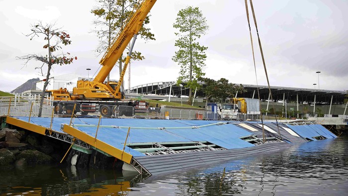 Konstruksi bangunan venue di Olimpiade Rio memang mendapatkan kritik sejak bulan April. Wakktu itu, trek balap sepeda juga ambrol dan menewaskan dua orang.