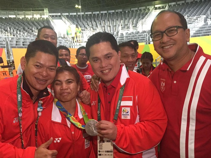 Ucapan selamat pun juga datang dari Ketua KOI, Erick Thohir, yang menyaksikan langsung keberhasilan Sri Wahyuni mendapatkan medali tersebut.