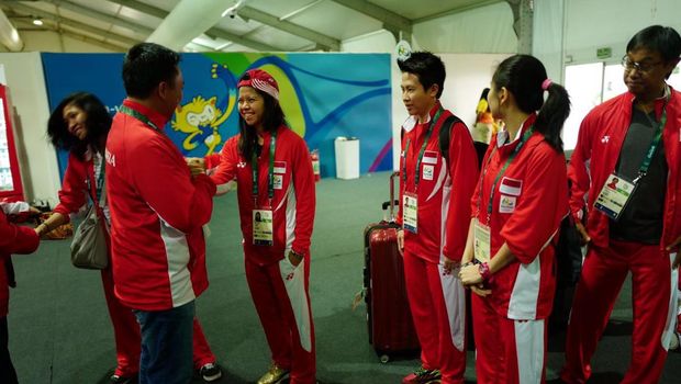 Pun tatkala Menpora menyambut kedatangan rombongan tim bulutangkis di kampung atlet, setelah mereka selesai menjalani training camp di Sao Paulo sejak seminggu sebelumnya. Cabang bulutangkis akan dipertandingkan pada 11-20 Agustus.