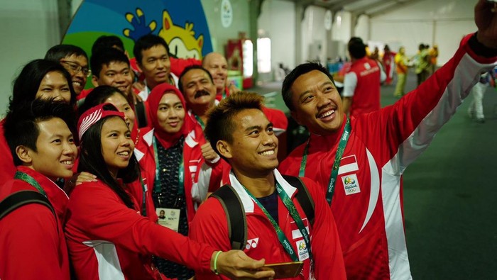 "Bulutangkis merupakan salah satu tumpuan utama Indonesia untuk meraih emas di Olimpiade kali ini. Namun demikian atlet tidak perlu terbebani, tampil rileks dan enjoy saja bermain," ucap Menpora, yang tak lupa ber-selfie ria dengan para atlet.