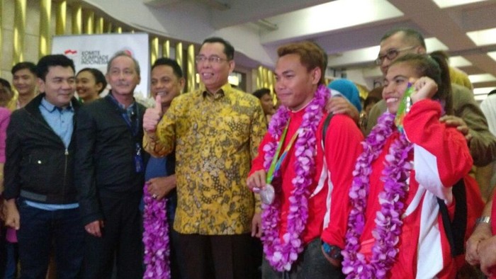 Rombongan yang berisikan Eko dan Sri Wahyuni pun langsung disambut perwakilan KOI, Plt. Sesmenpora Sakhyan Asmara, dan Ketua Satlak Prima Achmad Soetjipto. Satu per satu dimulai dari pelatih kemudian atlet mendapat pengalungan bunga dari Wakil Ketua Umum KOI Muddai Madang.