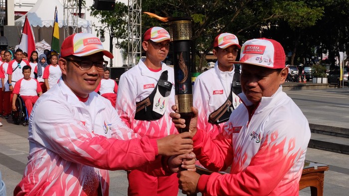 Dia akan menerima api itu dari Presiden Jokowi. Sebelum diterima Jokowi, sejak siang tadi, Jumat (16/9/2016), obor api PON itu dikirab dari Kantor Walikota Bandung menuju Kantor Gubernur Jawa Barat di Gedung Sate.