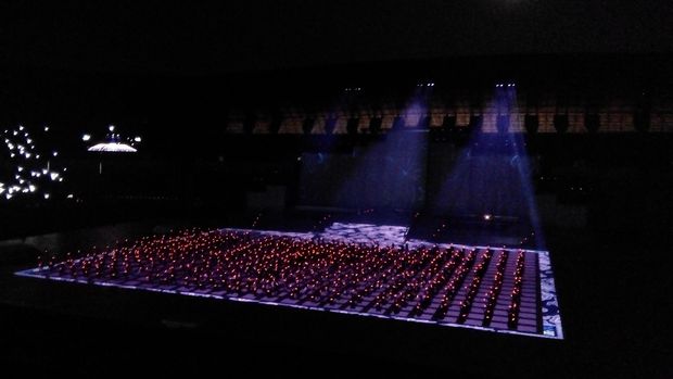 Giant screen yang memunculkan peta provinsi setiap kali kontingen provinsi disebut memudahkan penonton mengenali tim yang tengah jadi tokoh utama dalam defile.