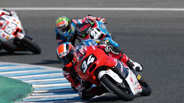 Dimas Ekky, yang beraksi di CEV Moto2 European Championship, sebenarnya sempat melesat sampai posisi tiga pada awal balapan di Jerez, Spanyol. Tapi grip ban, ditambah kondisi aspal yang kian panas, membuatnya kesulitan mempertahankan posisi.
