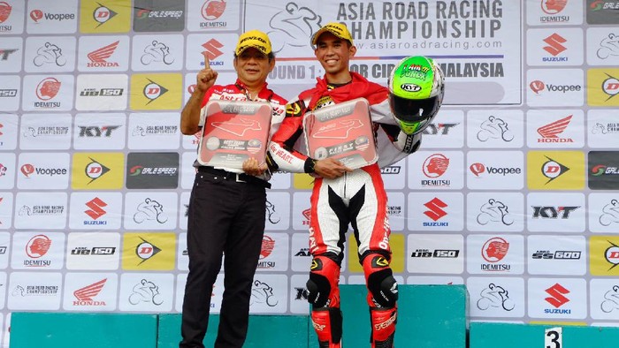 Gerry tampil sebagai pemenang dalam Race 1 kelas AP250 di ajang Asia Road Racing Championship (ARRC) 2017 yang dilangsungkan di Sirkuit Johor, Malaysia, Sabtu (1/4/2017). Pebalap yang tahun lalu turun di kelas supersports 600cc itu memenangi duel sengit melawan Takehiro Yamamoto (Jepang) dan Anupab Sarmoon (Thailand).