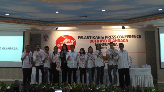Secara resmi Krisdayanti, Chicco Jeriko, Wulan Guritno, Nugie, Sarwendah, Denny Sumargo, Tatjana Saphira, Samuel Rizal, dan Prilly Latuconsina didapuk sebagai duta Ayo Olahraga pada Rabu (3/5/2017). Mereka dilantik di Wisma Kemenpora, Senayan, Jakarta.