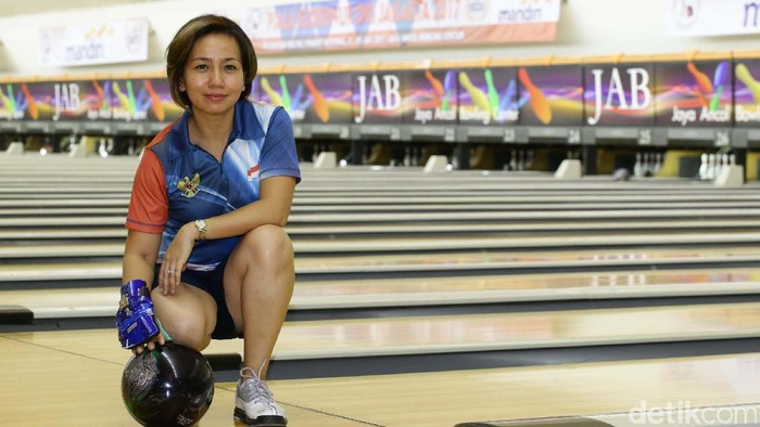 Putty Armein saat berlatih di Jaya Ancol Bowling Center di Ancol, Jakarta Utara. (Hasan Al Habsyi/detikSport)